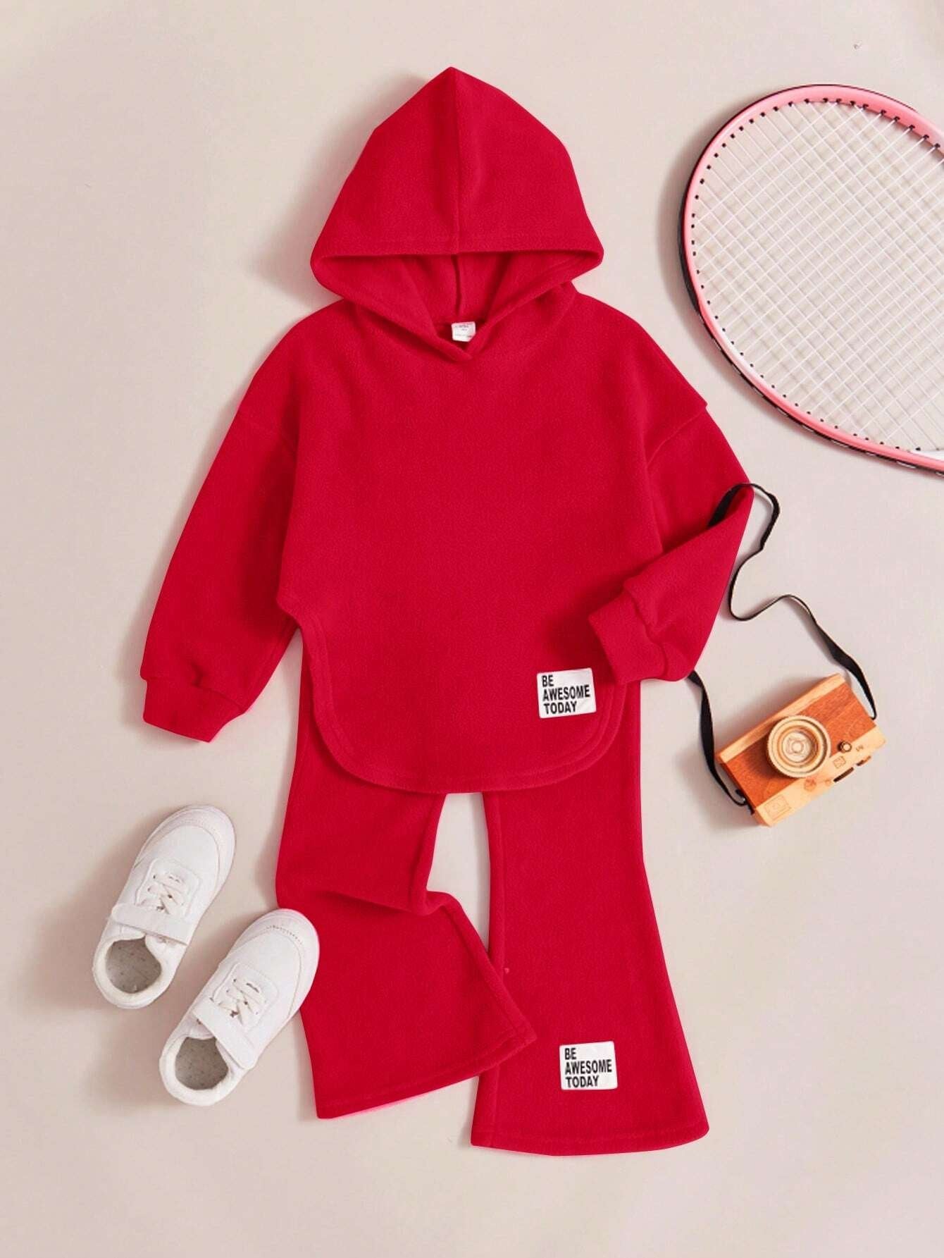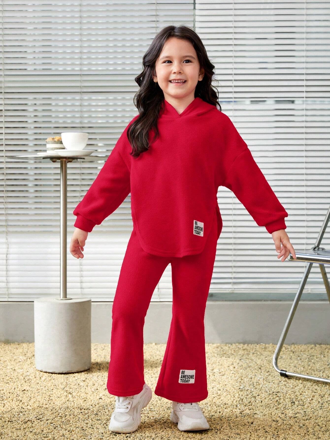 Conjunto Rojo De Sudadera Con Capucha Y Pants Para Niña