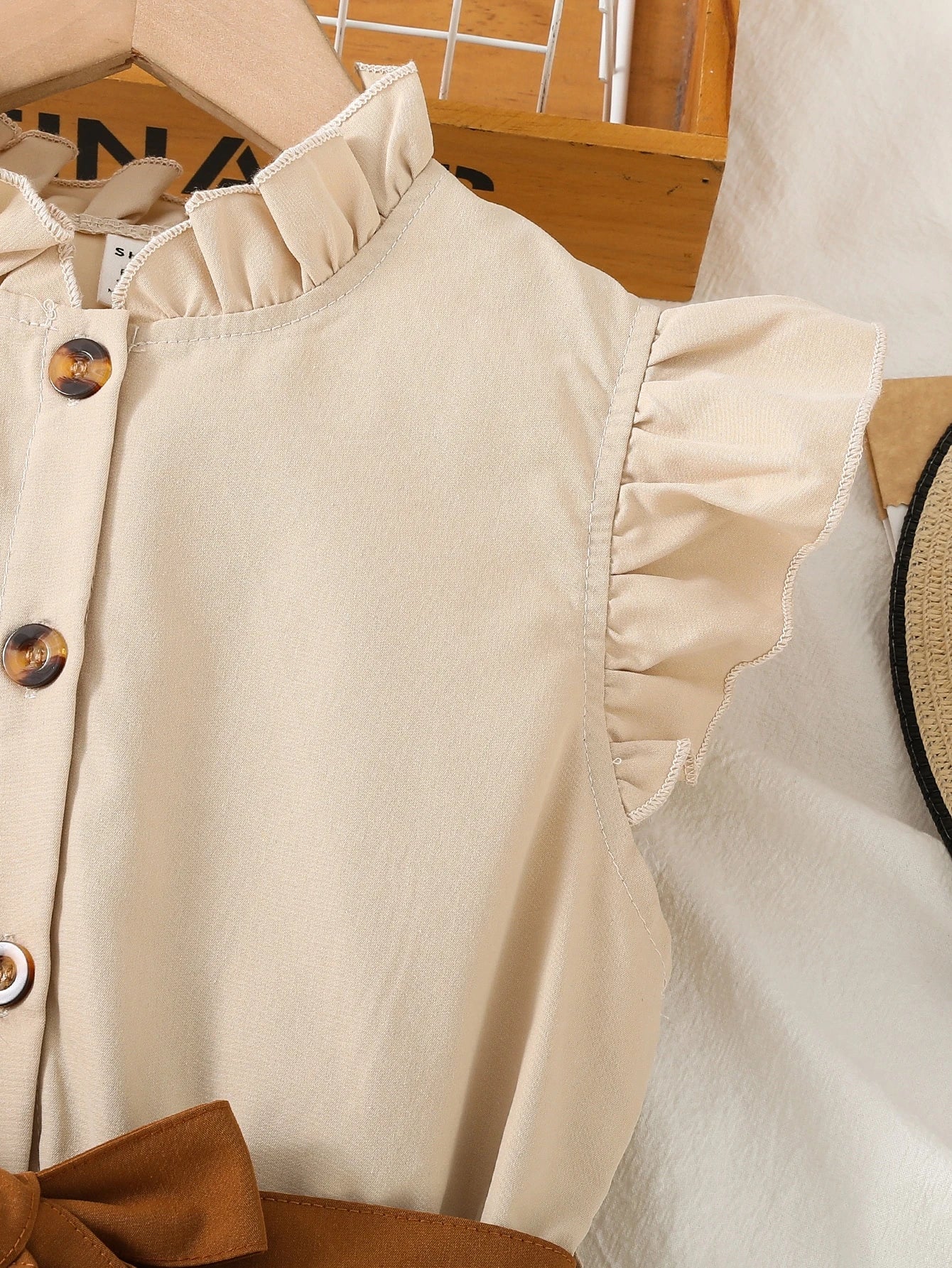 Vestido Albaricoque Para Niña Con Cinturón Marrón