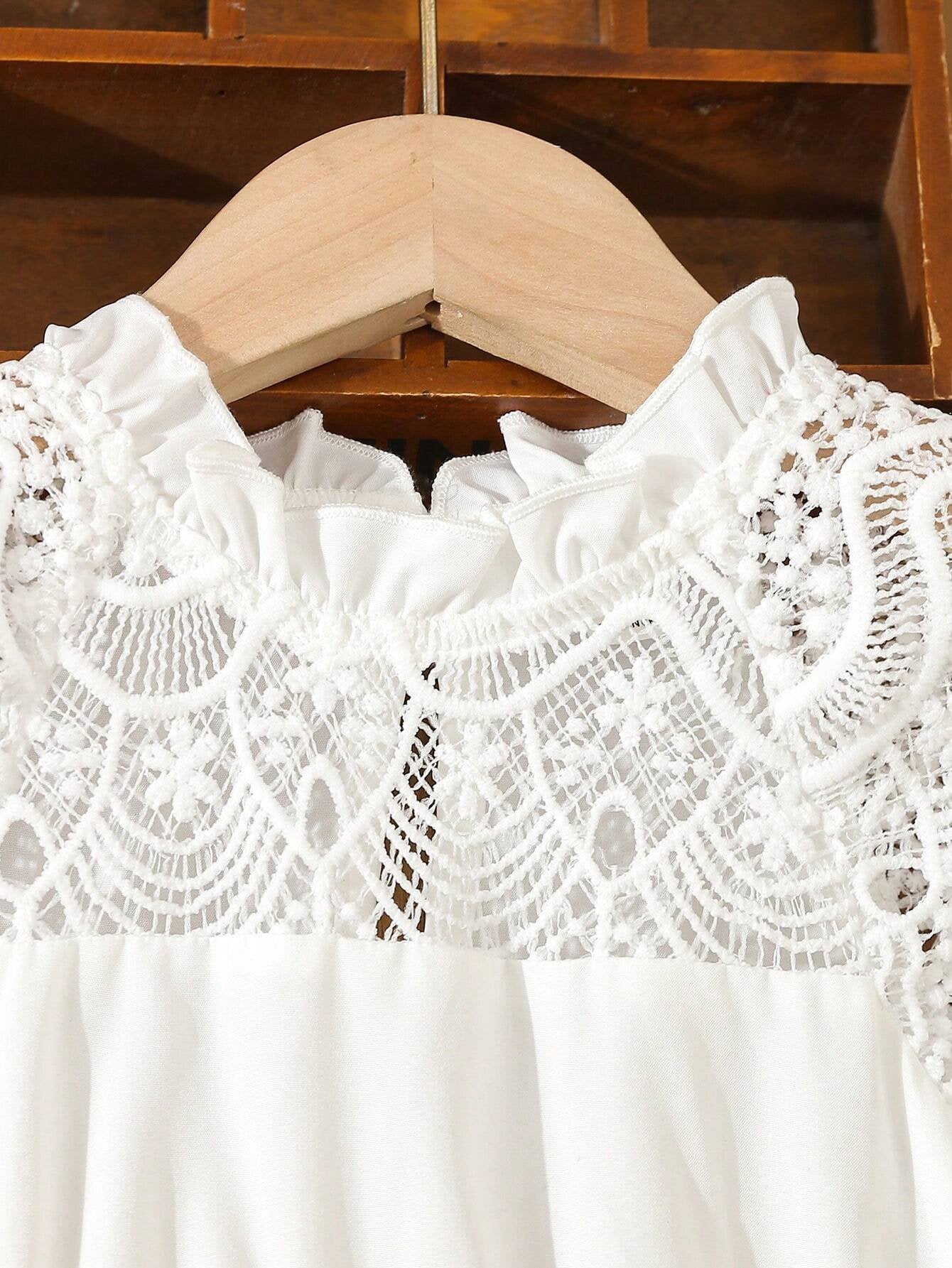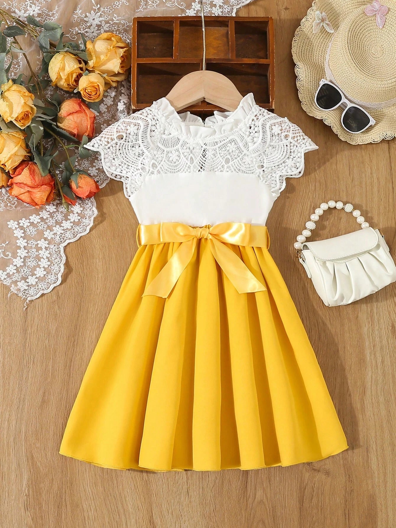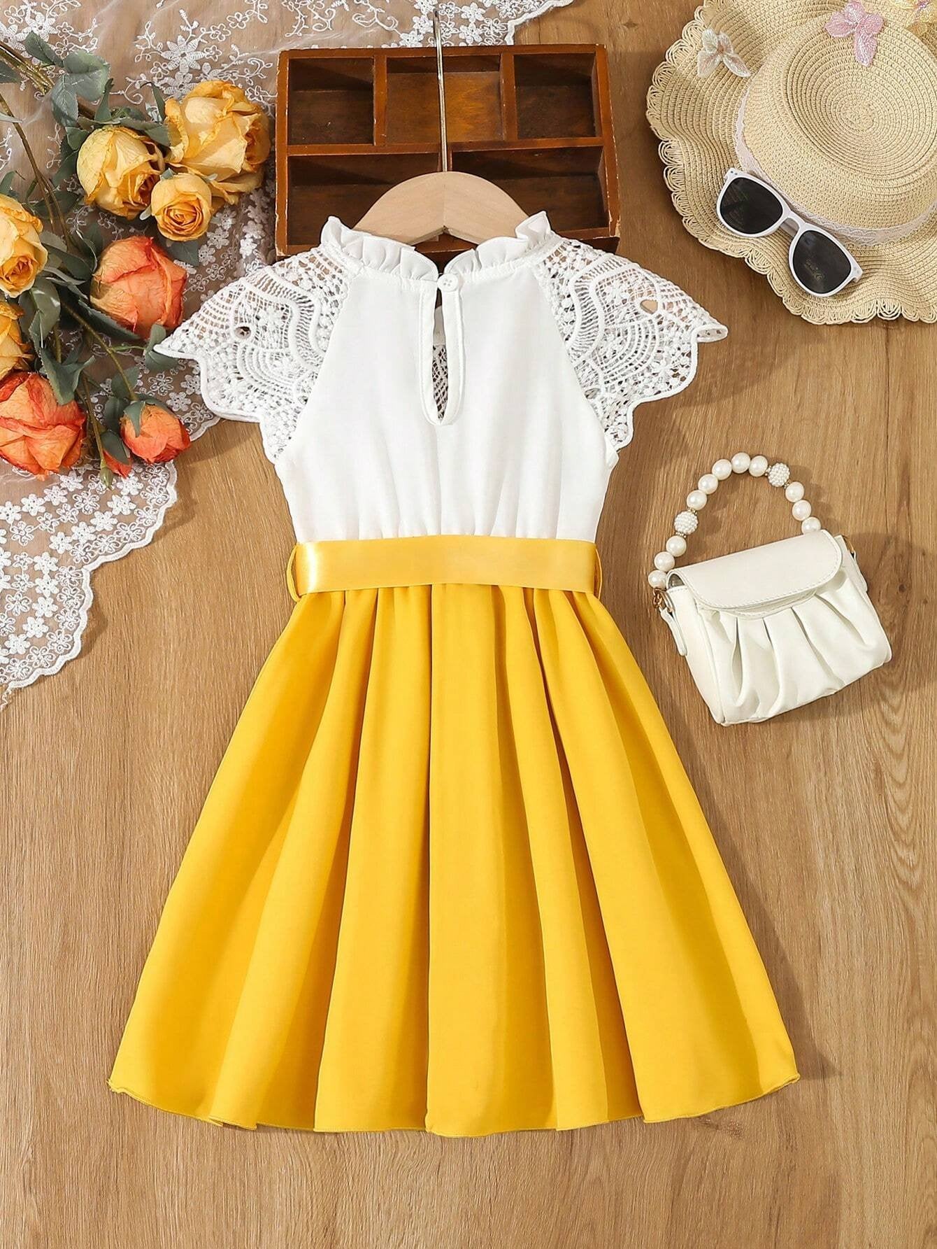 Vestido Amarillo Para Niña Con Encaje En Contraste