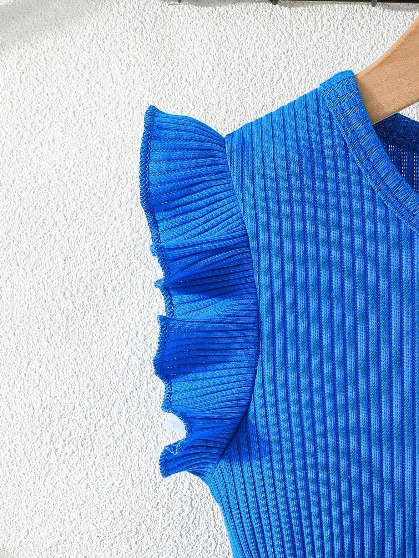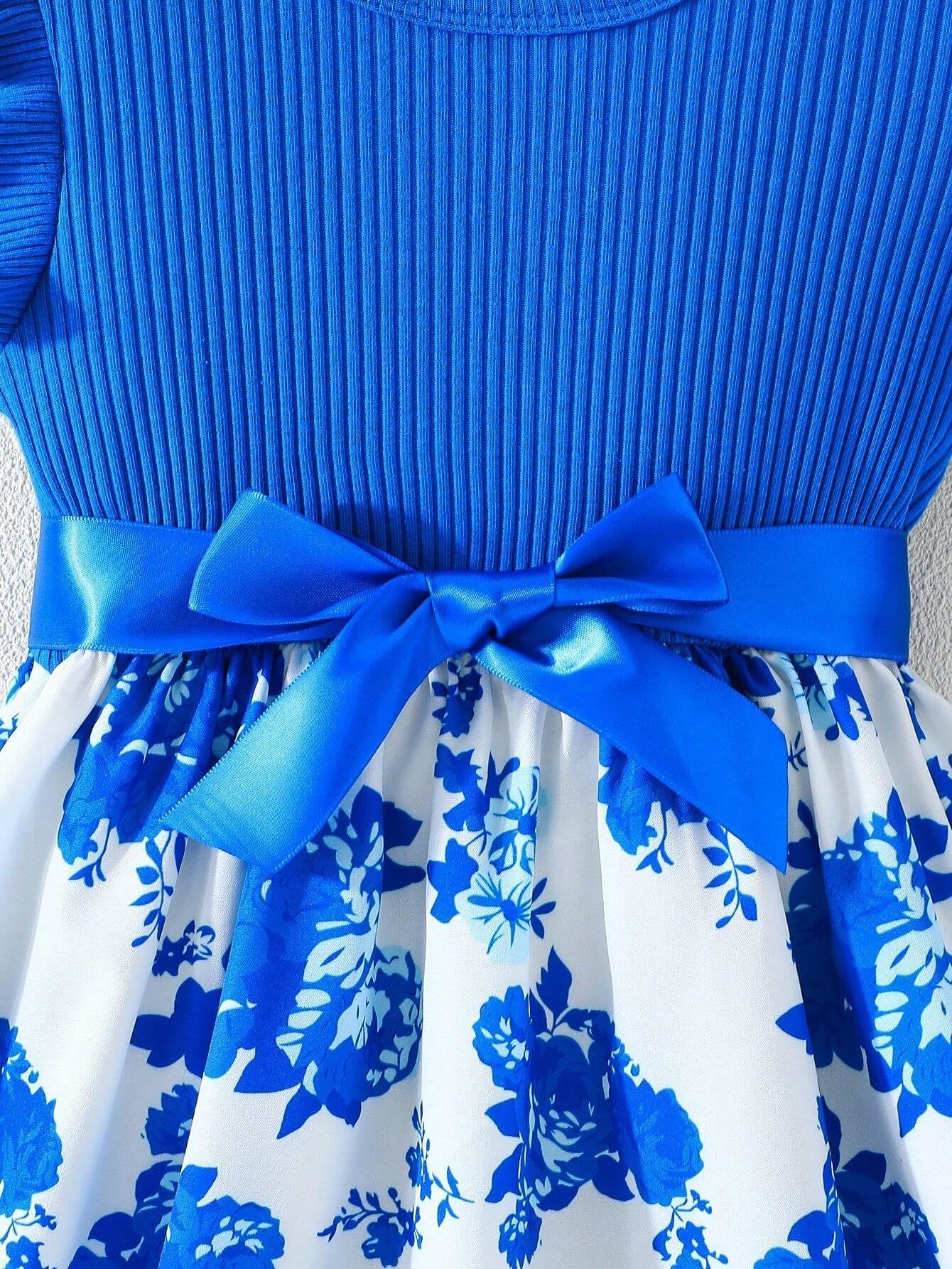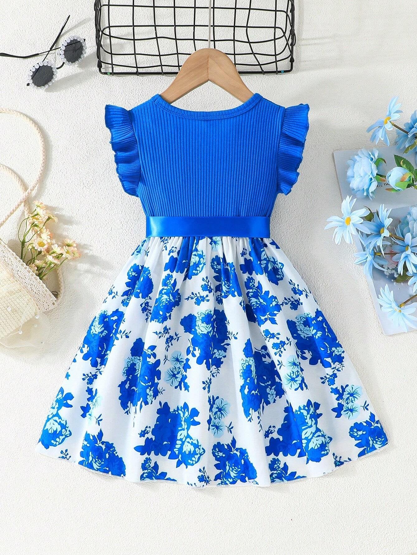 Este vestido azul floral con volantes para niña es ideal para los días más frescos y coloridos. Su diseño alegre y tejido suave garantizan comodidad y estilo.