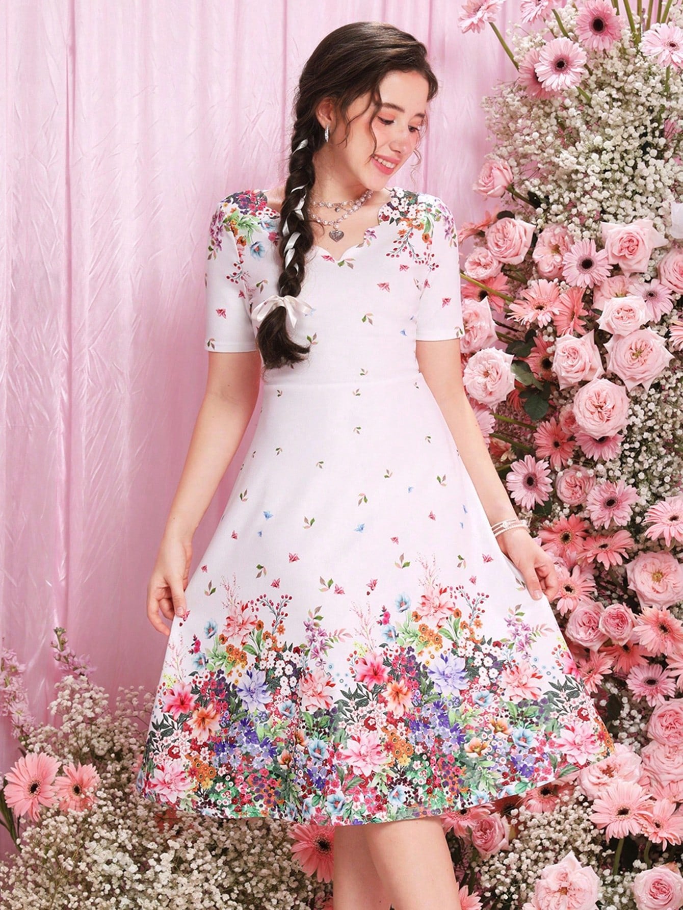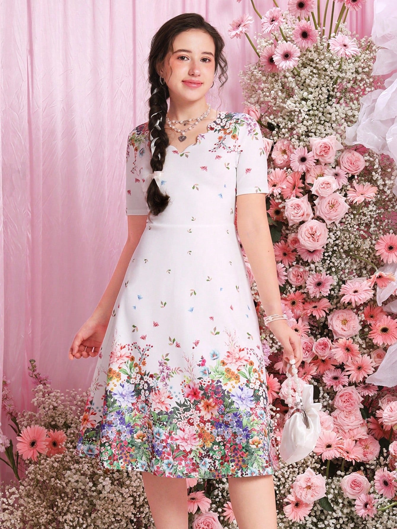 Este vestido blanco floral para niña es ideal para eventos especiales. Su diseño dulce, elegante y lleno de color la hará destacar con frescura y encanto.