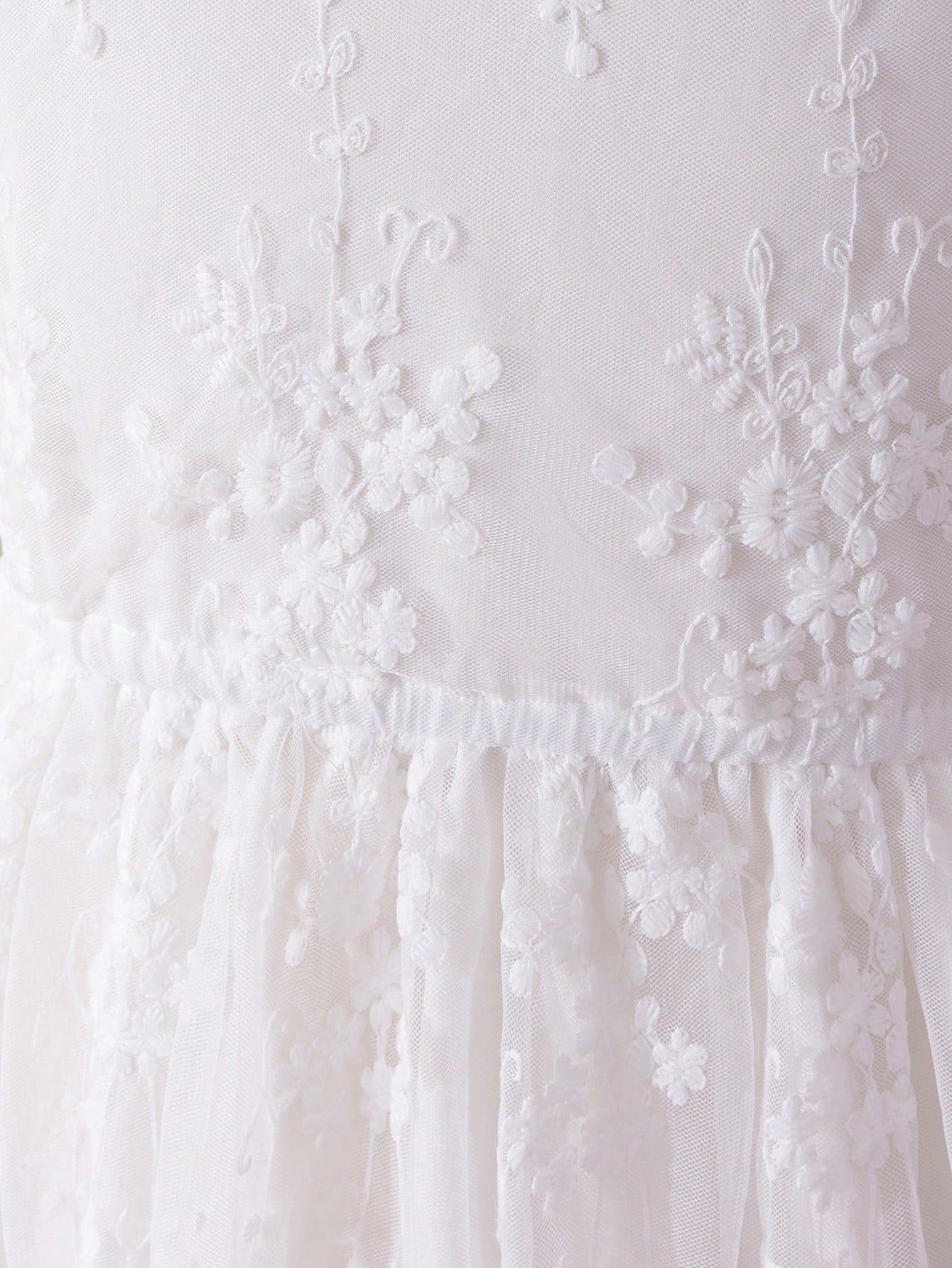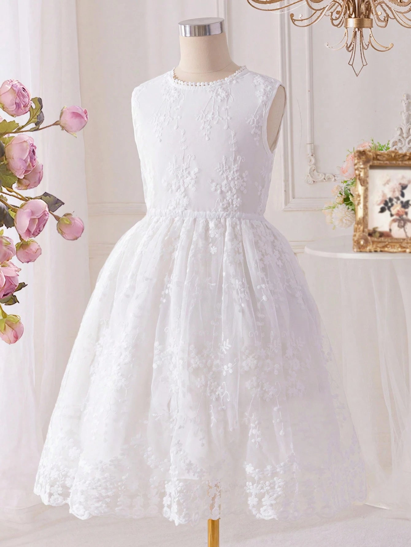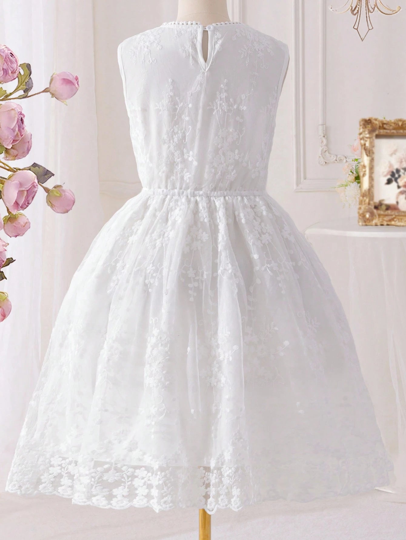 El Vestido Blanco Elegante Bordado Para Niña es una prenda que resalta por su delicadeza y distinción. Su silueta en corte A línea con falda campana ofrece un movimiento fluido y lleno de gracia, mientras que el escote redondo añade un toque clásico y atemporal. Los apliques y bordados florales en relieve sobre el tejido transmiten una sensación romántica y sofisticada, ideal para momentos inolvidables.