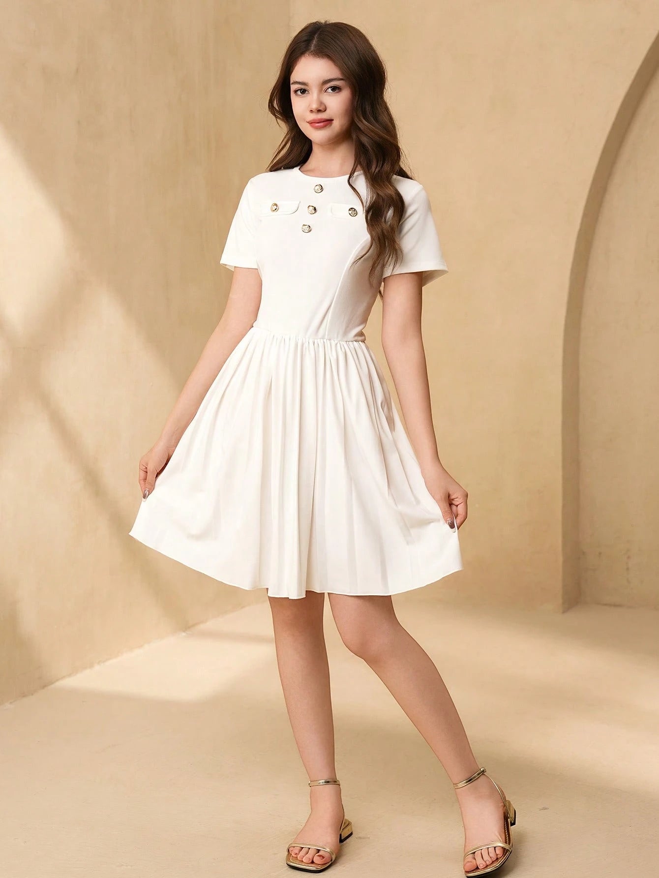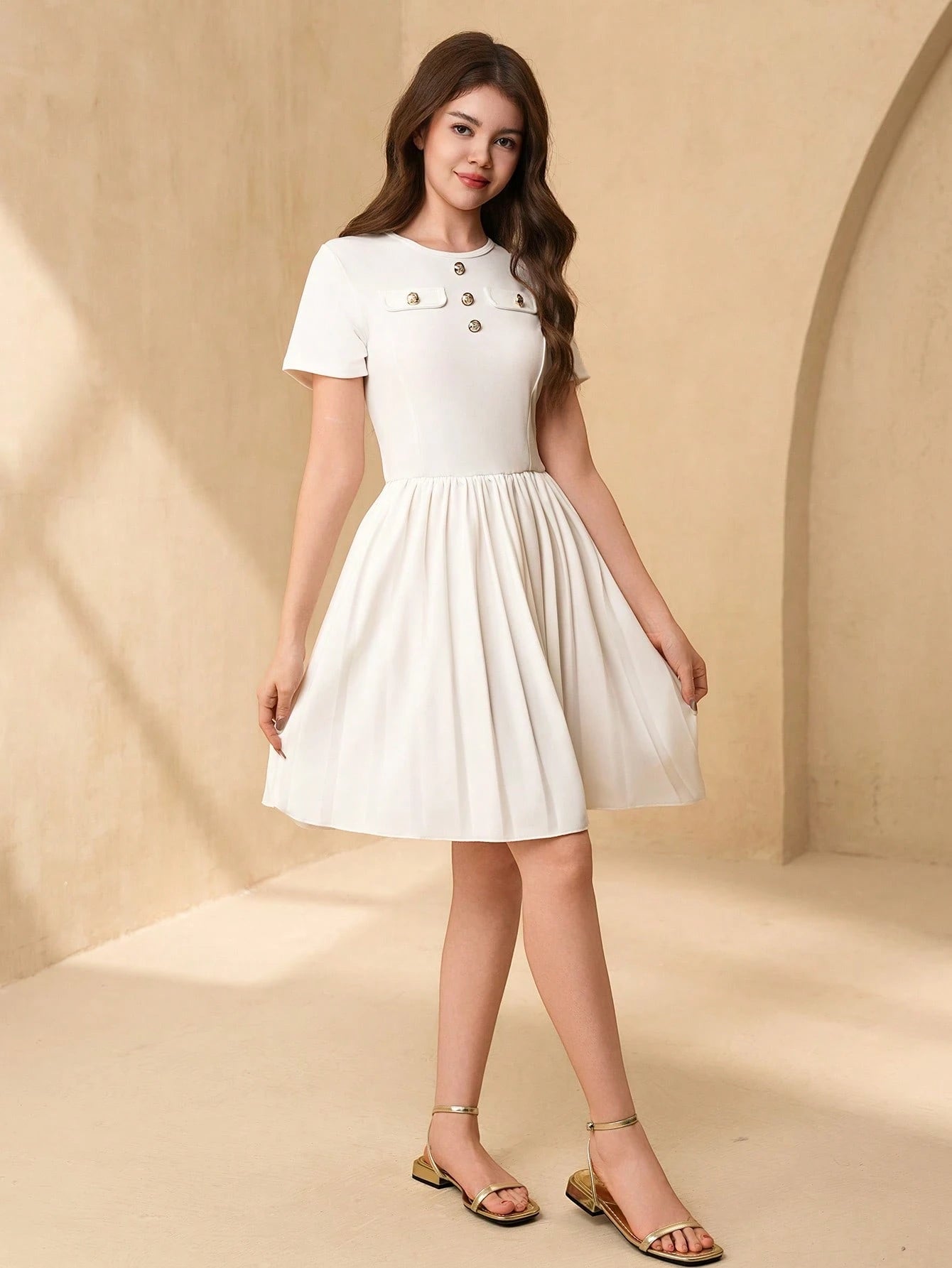 Vestido Blanco Elegante Con Botones Para Niña
