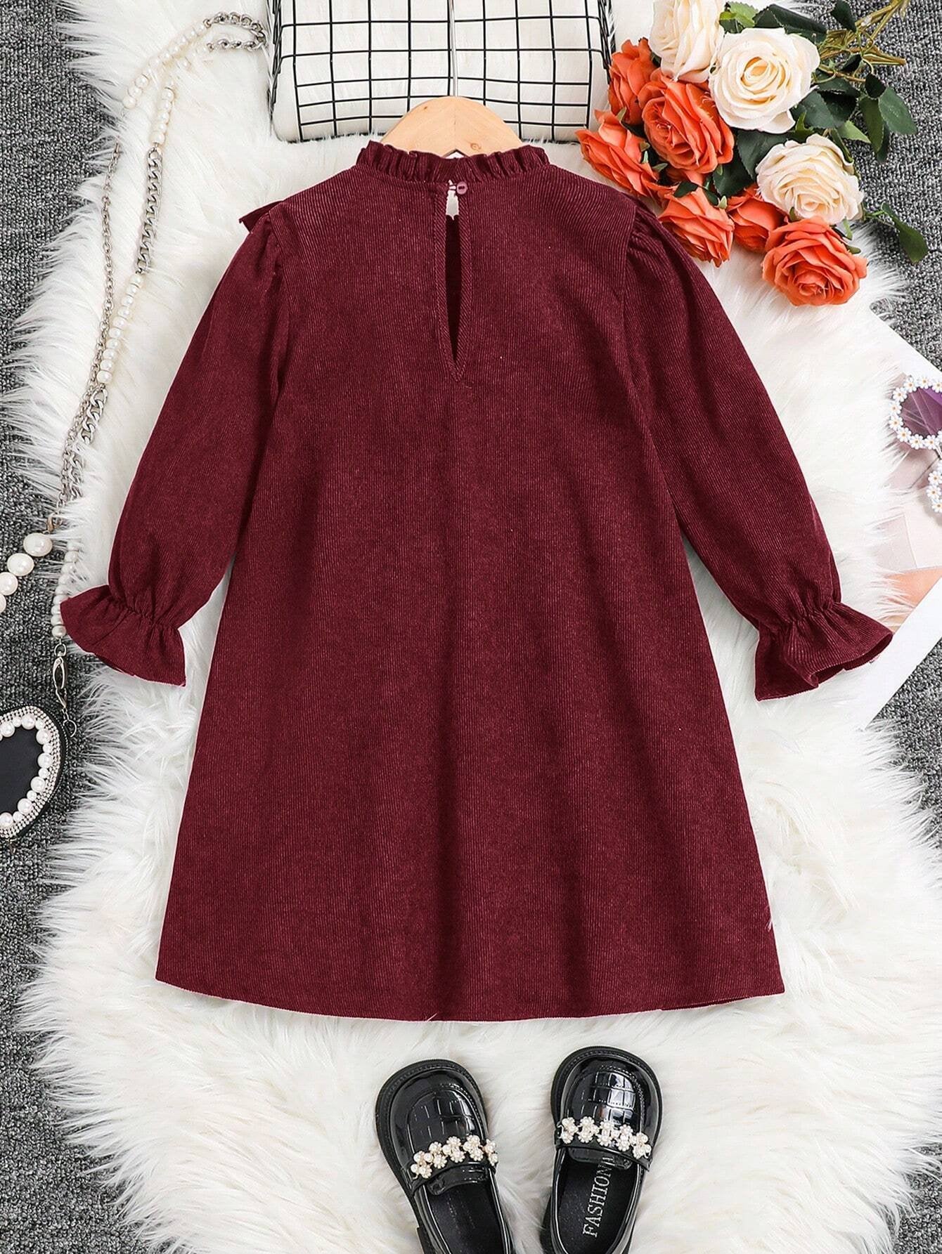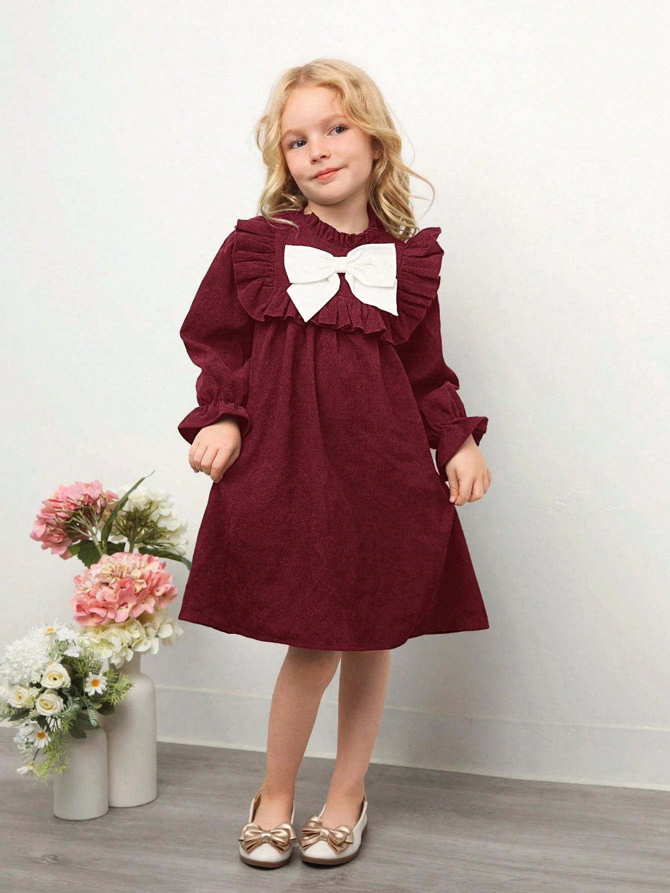 Vestido Burdeos Con Moño Grande Y Volantes Para Niñas