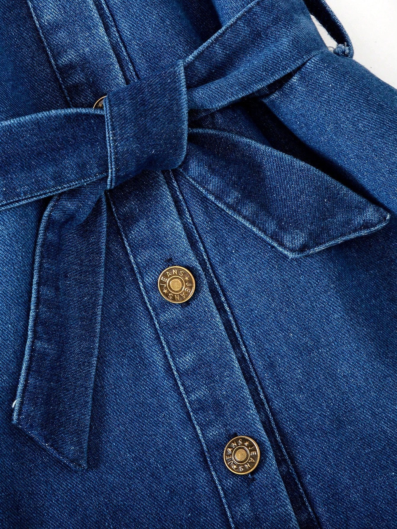 Vestido Camisero De Mezclilla Azul Para Niña Con Volantes