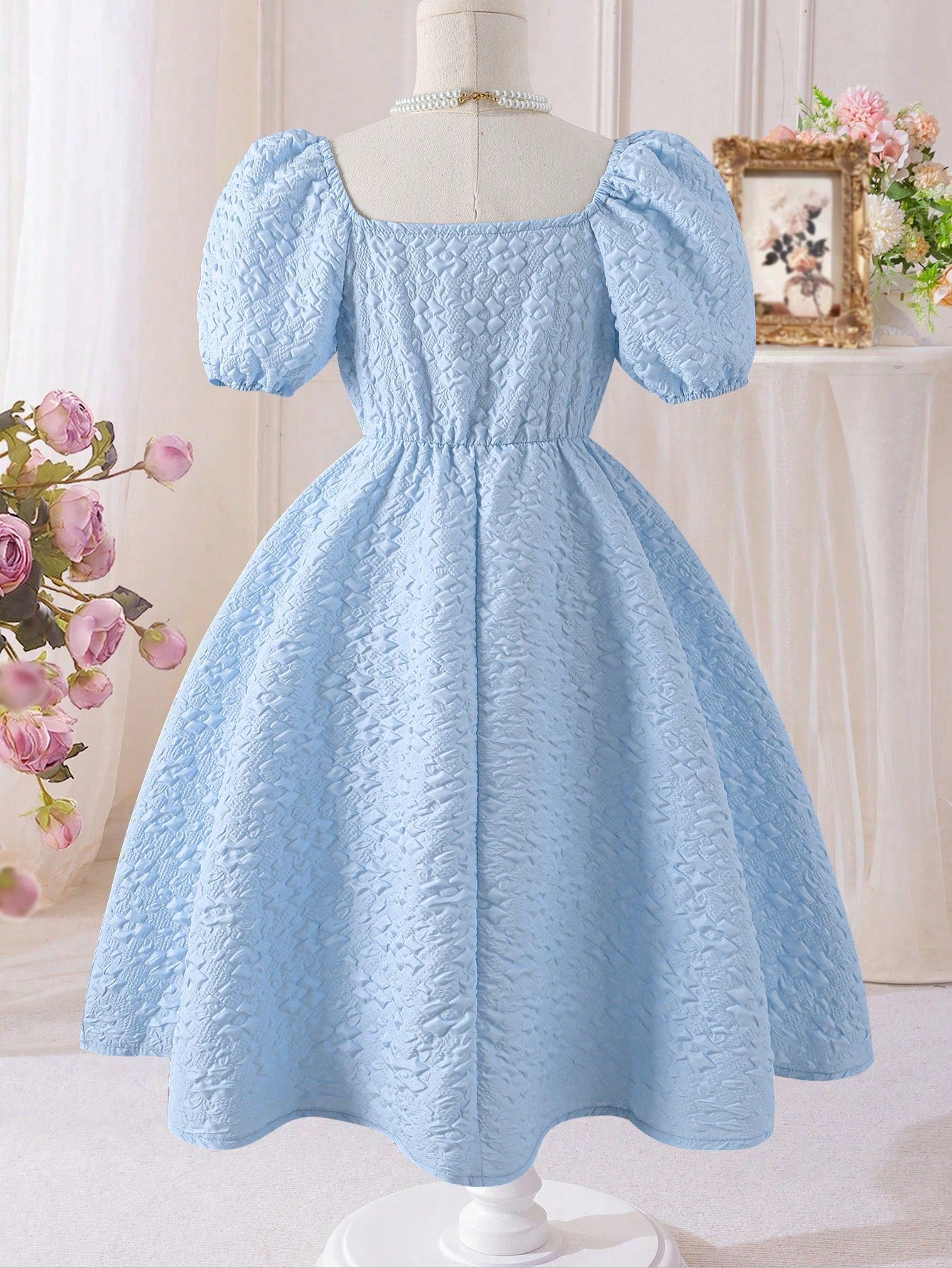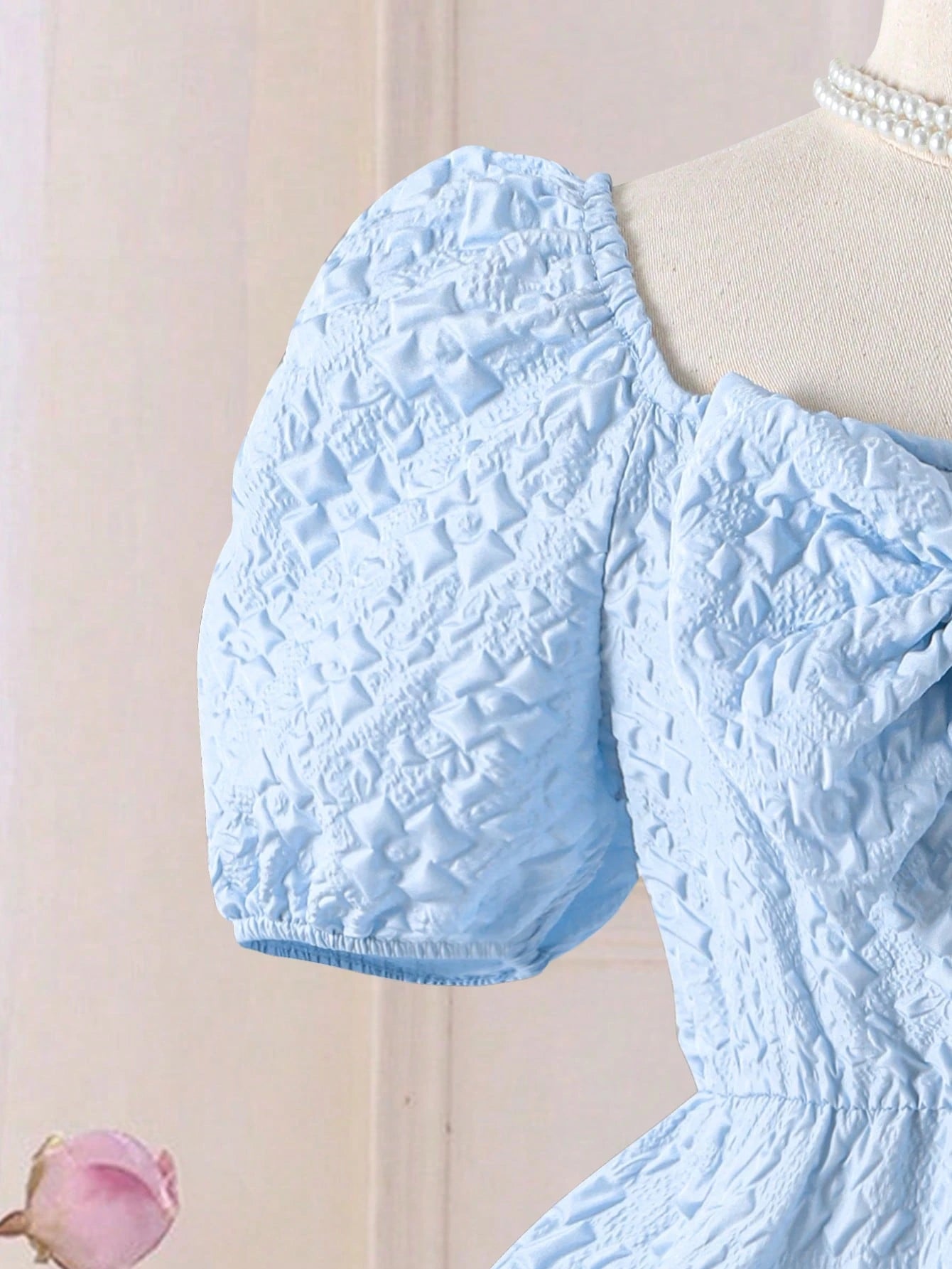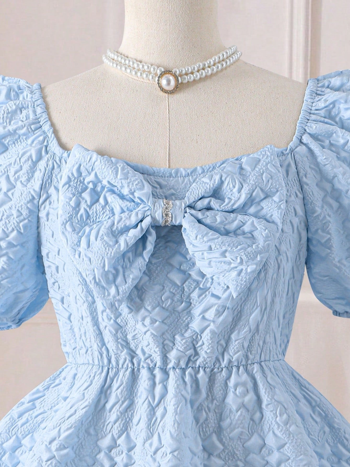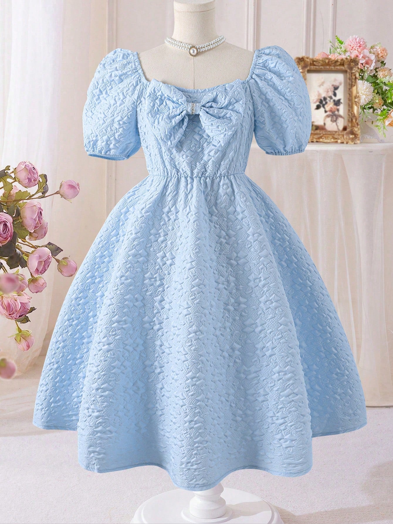 Vestido Celeste Texturizado Con Lazo Para Niña