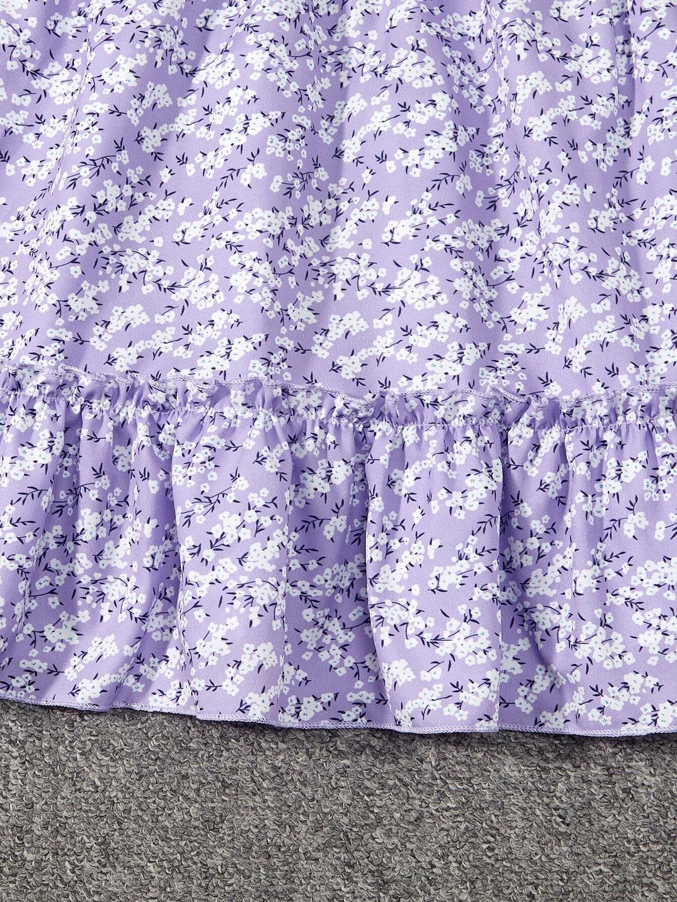 Este vestido floral morado para niña con volantes y manga farol dulce combina frescura, estilo bohemio y un diseño encantador perfecto para cualquier ocasión especial.
