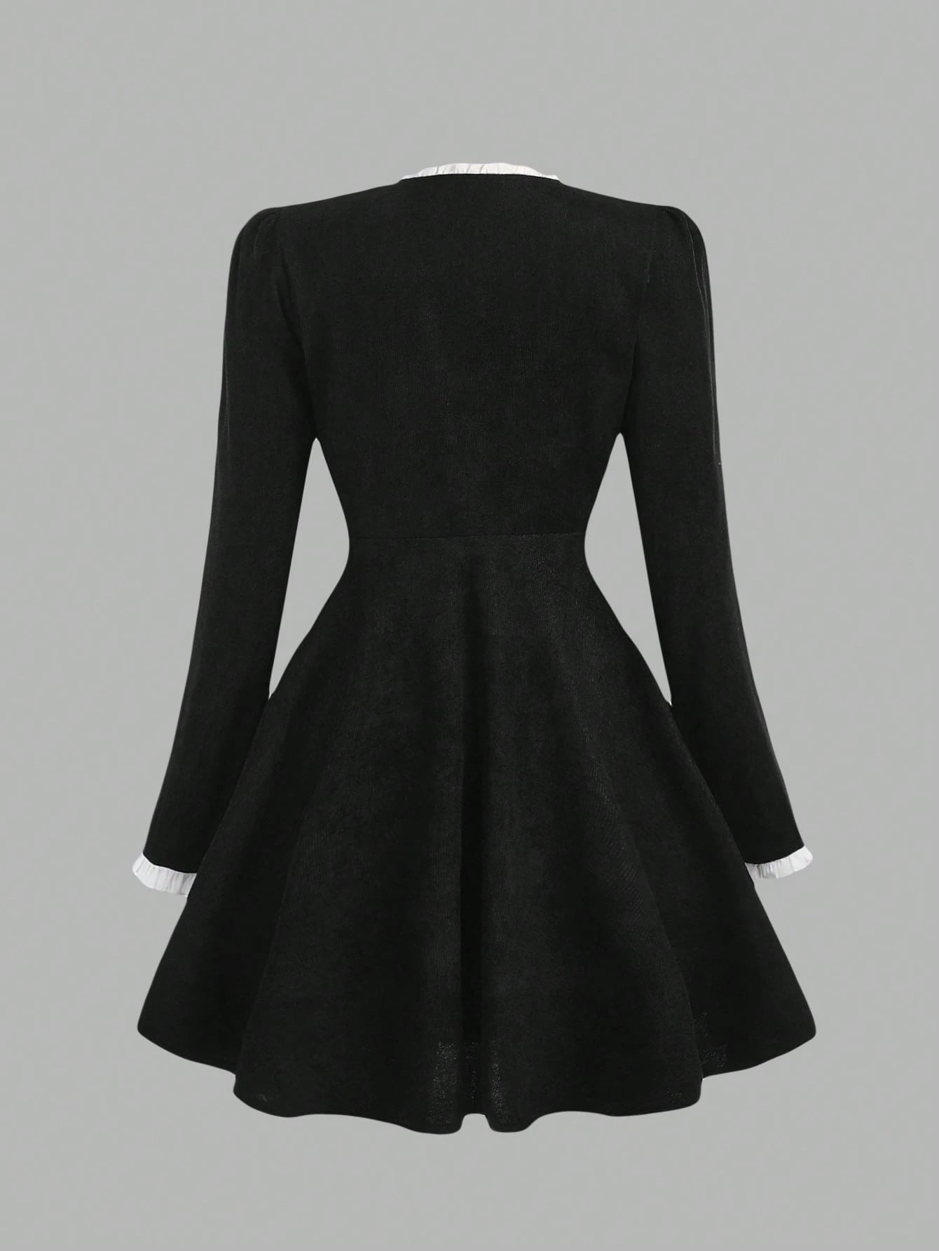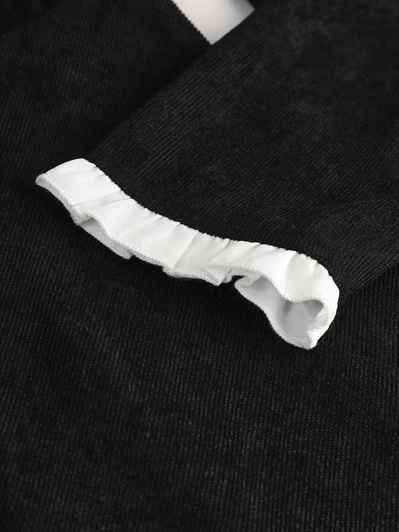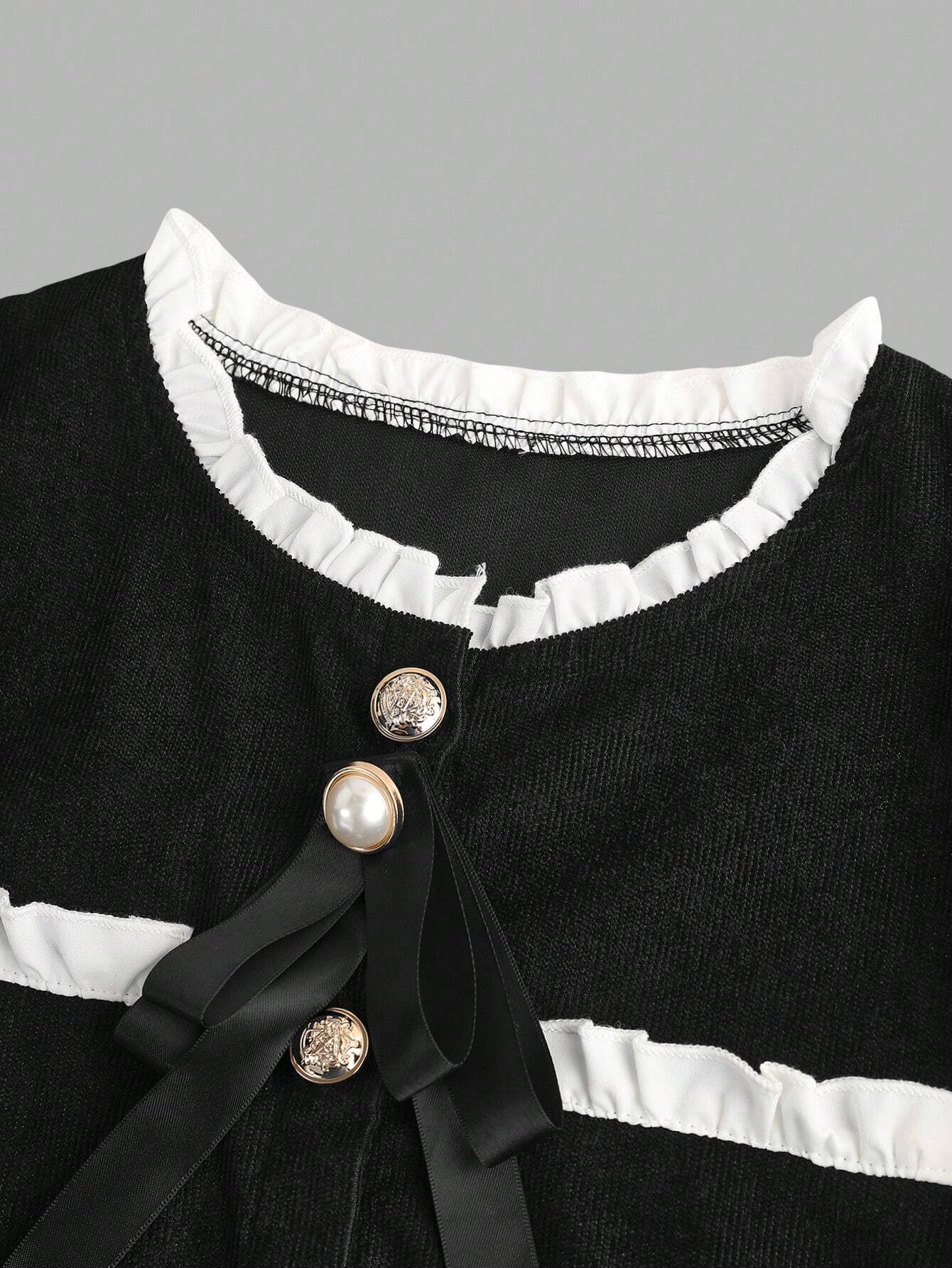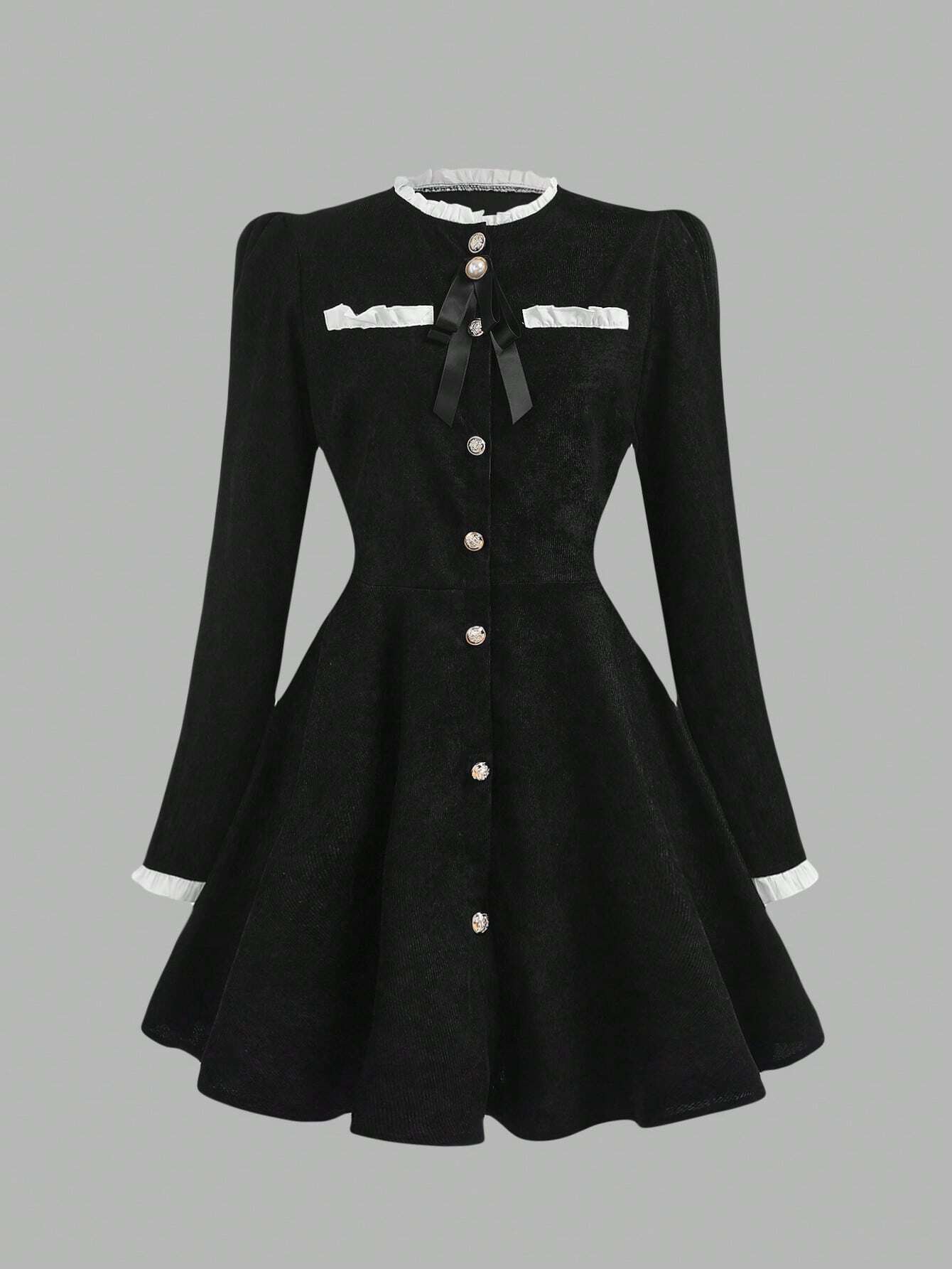 Vestido Negro Con Lazo Y Botones Decorativos Para Niña