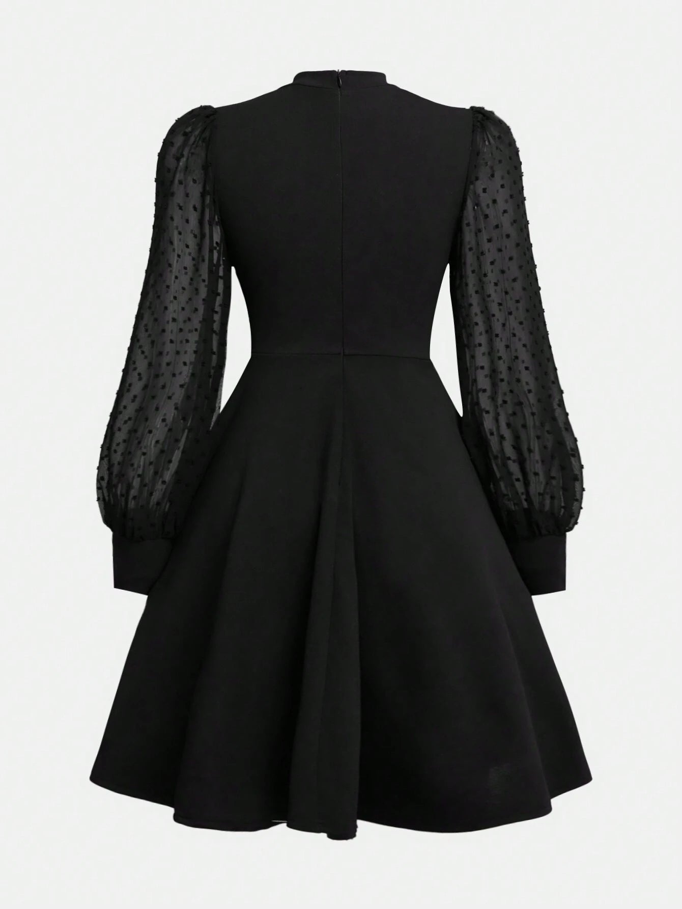 Vestido Negro Con Mangas De Gasa Y Botones Dorados Para Niña