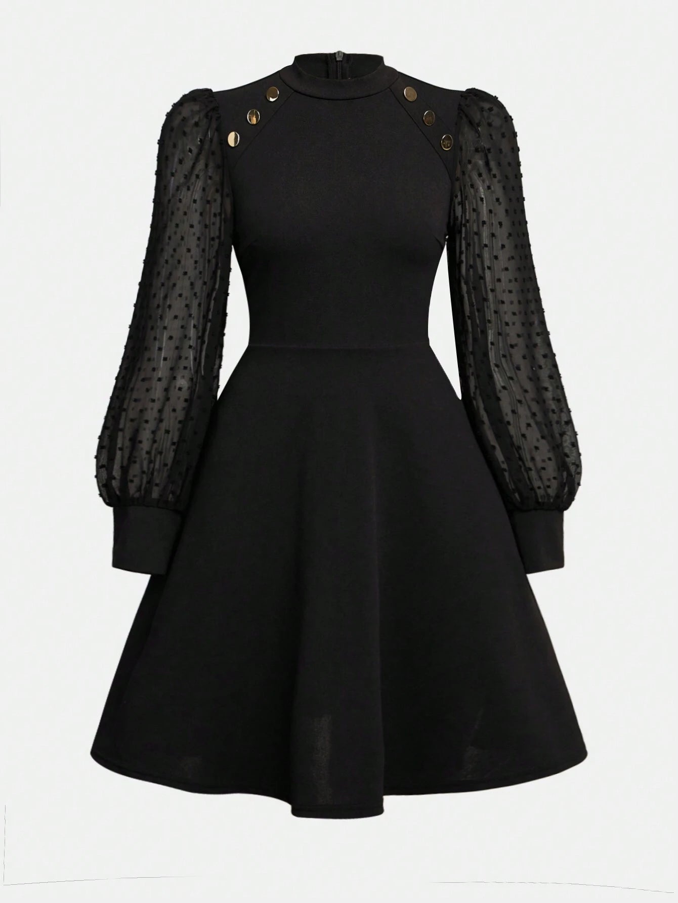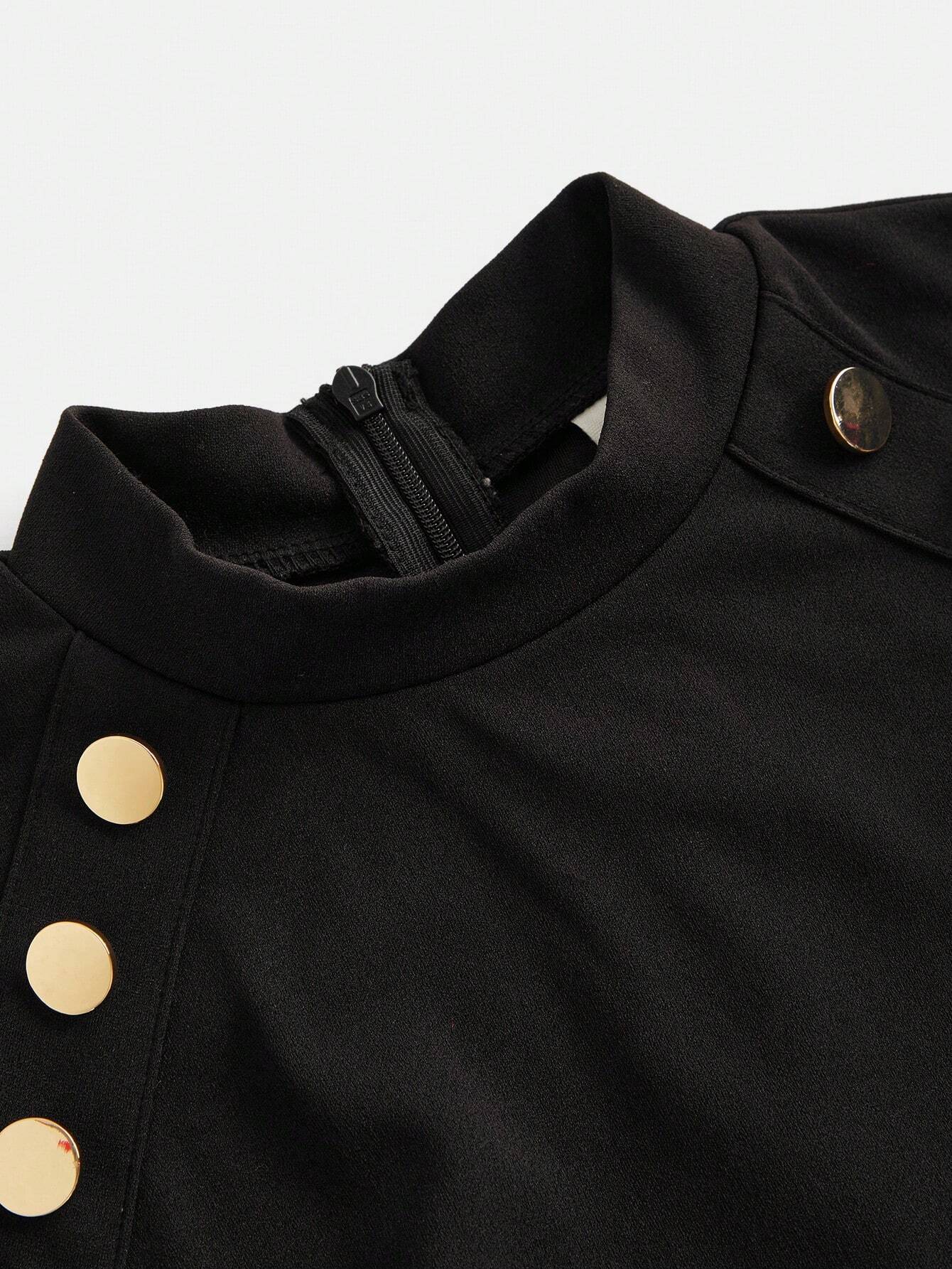 Este Vestido Negro Con Mangas De Gasa Y Botones Dorados Para Niña combina elegancia y modernidad. Perfecto para ocasiones especiales con un toque sofisticado.