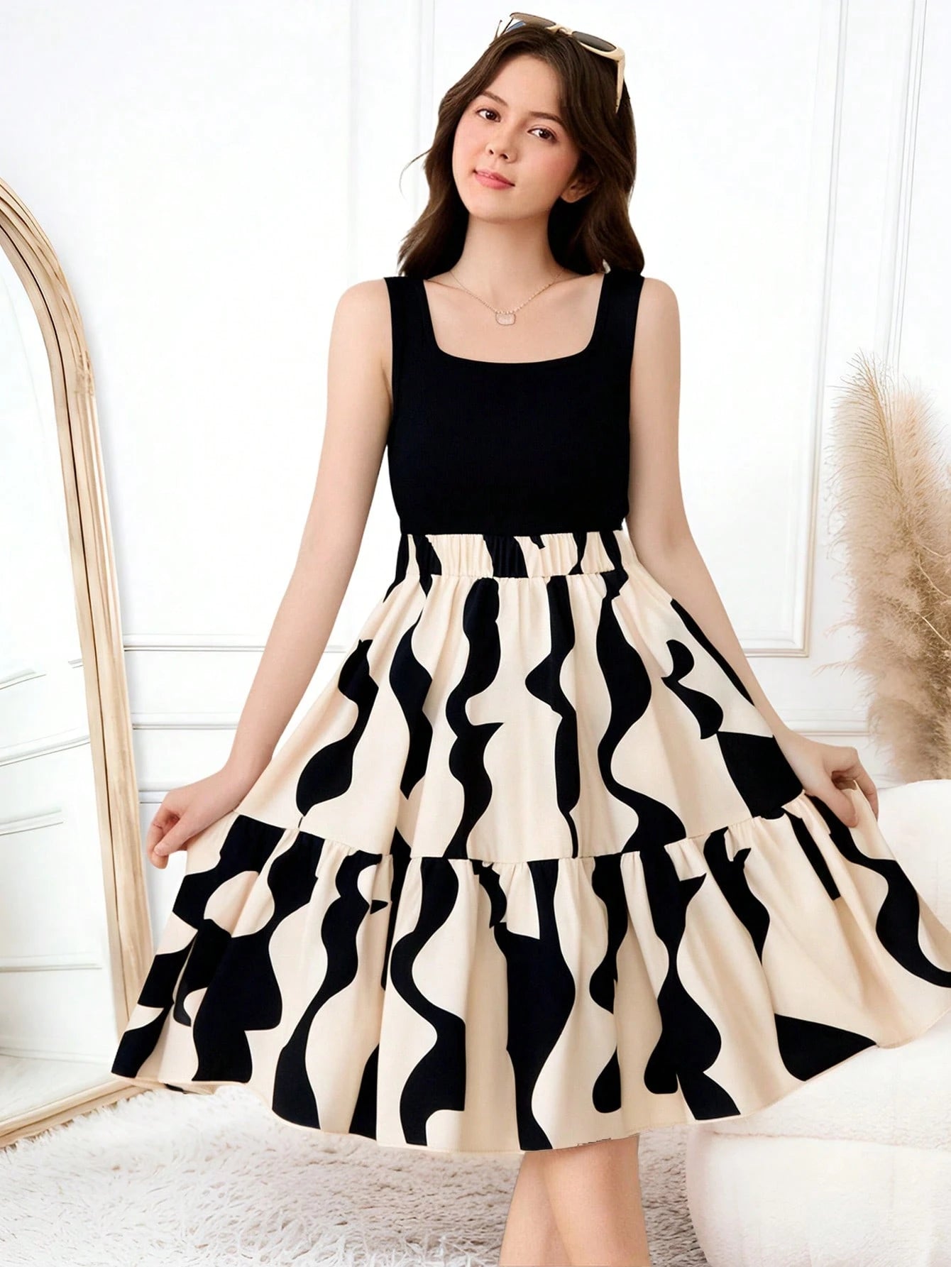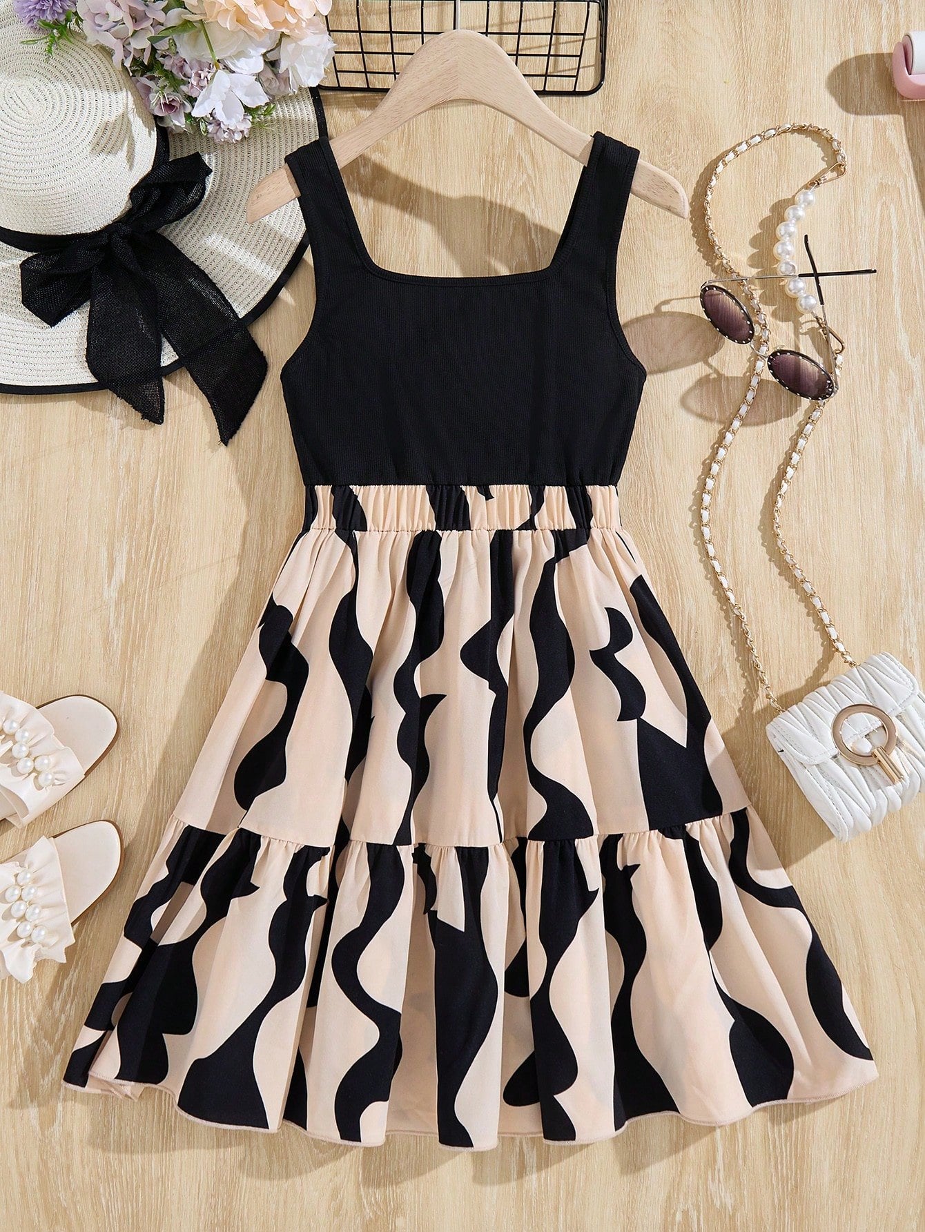 Este vestido negro con tirantes para niña es ideal para los días más especiales, con un diseño encantador, estampado alegre y un corte cómodo que la hará destacar.