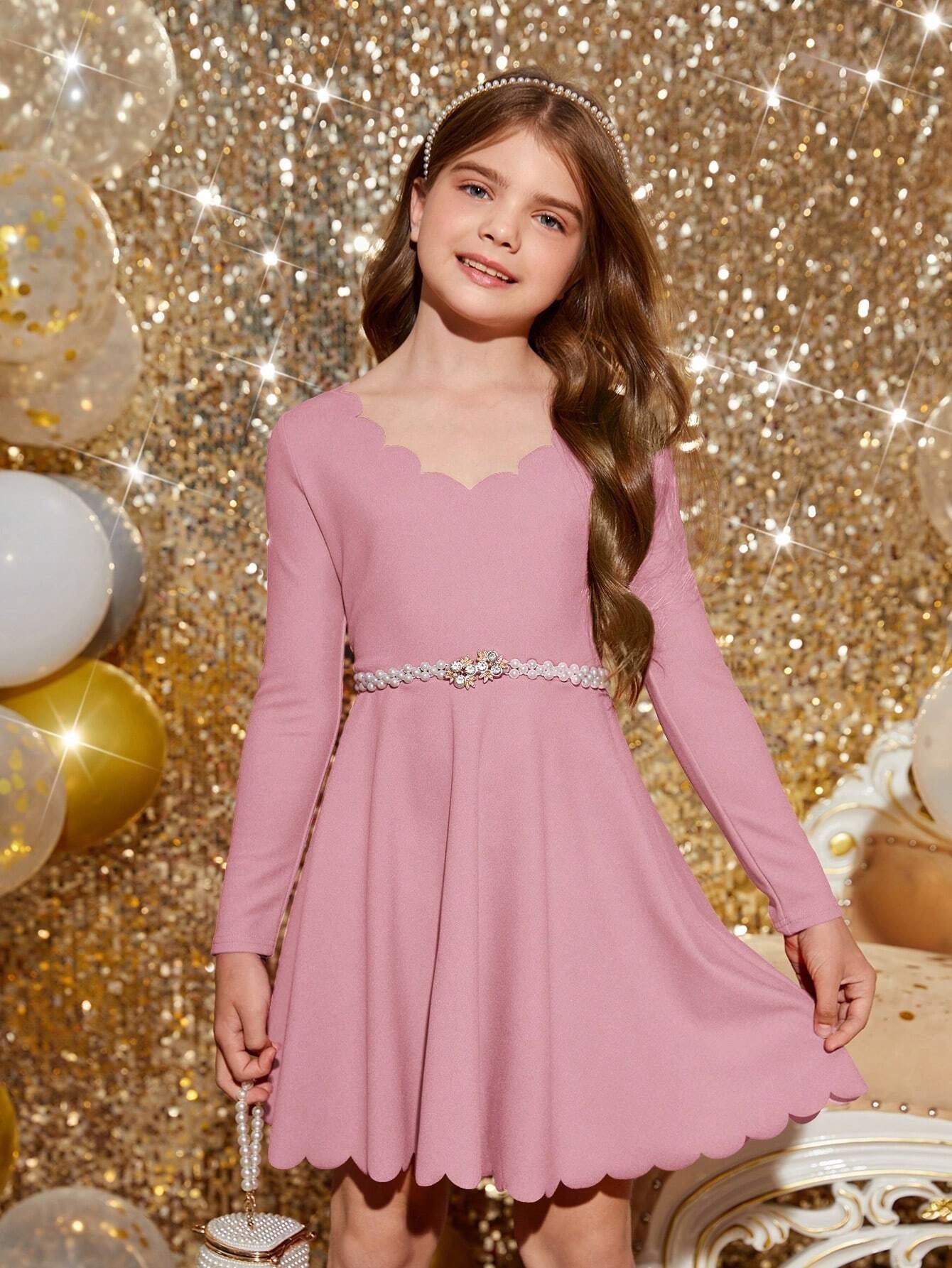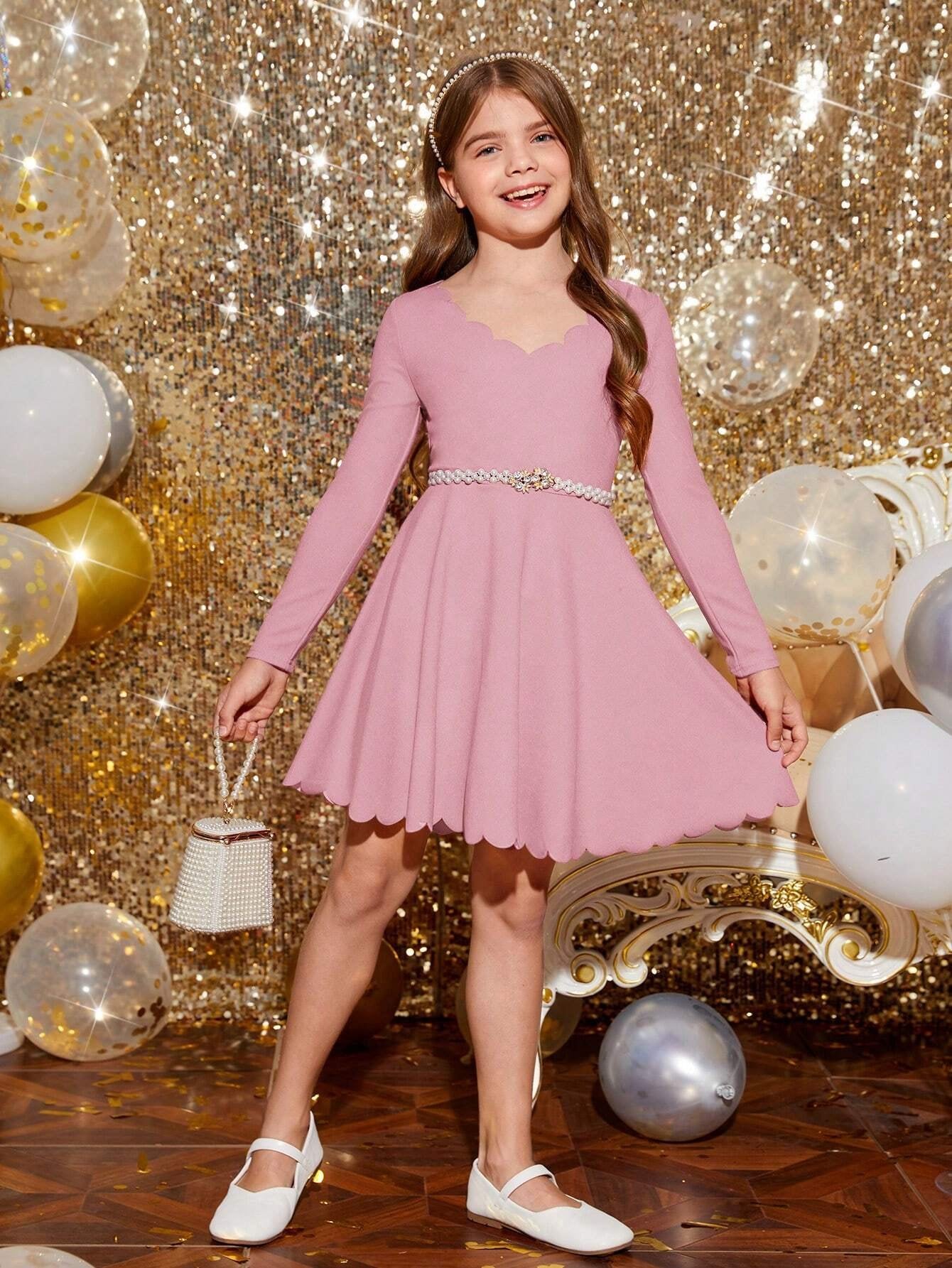 Vestido Rosa Pálido con Diseño Acampanado para Niña